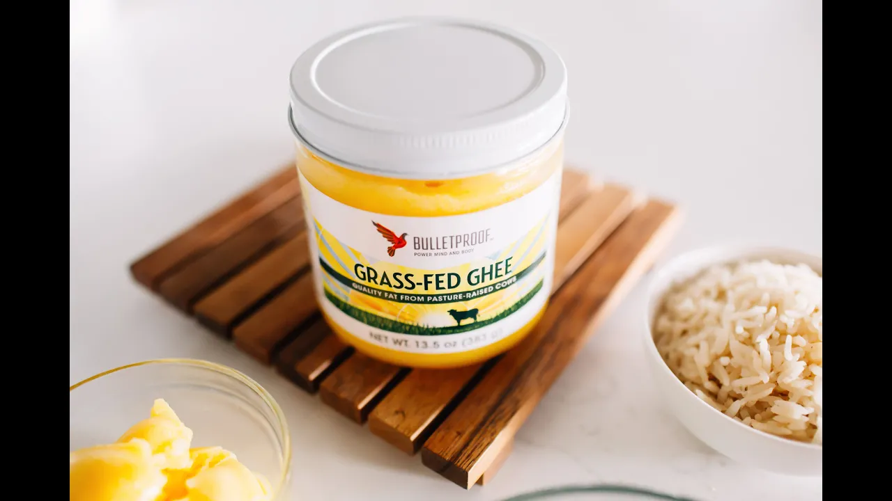 Bulletproof Ghee starts with just one ingredient: grass-fed, grass-finished butter. Gentle simmering then evaporates the water and separates out the milk solids, including most of the remaining lactose and casein.