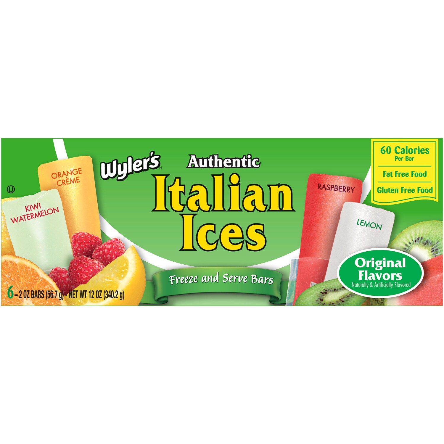 Wyler's® Authentic Italian Ices are a delicious summertime treat! These freeze and serve bars are made with real fruit juice (from concentrate) and come in four original flavors — kiwi watermelon, orange crème, raspberry, and lemon. Each 12-oz. box contains six 2-oz. fat-free, gluten-free bars. Perfect for cooling off after a day at the pool, sporting events, field days, and more!