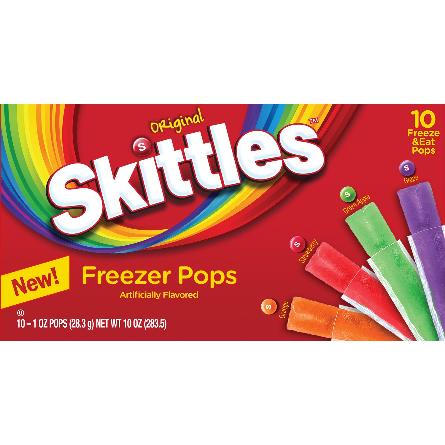 Traditional freezer pops just got better with these new Original Skittles™ Freezer Pops! Each 10-oz. box contains ten individually wrapped 1-oz. freeze and eat pops assorted among orange, strawberry, green apple, and grape flavors. Perfect for hot summer days, these artificially flavored freezer pops are great for schools, summer camps, and more!