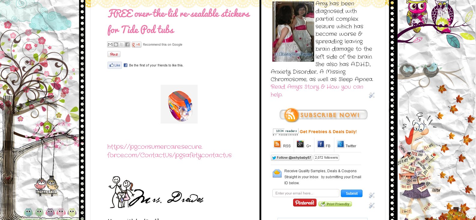 Once you have set up a good browser with the Last Pass Ad on the rest is easy. As I always say I only post the freebies, I do not actually send them out. I host giveaways and provide sponsored product reviews, but I do not do the prize fulfillment myself nor do I give out your info for free stuff. I just post the links to the company or person who is offering the freebies. So for example, you see this post when you appear on my web page:
