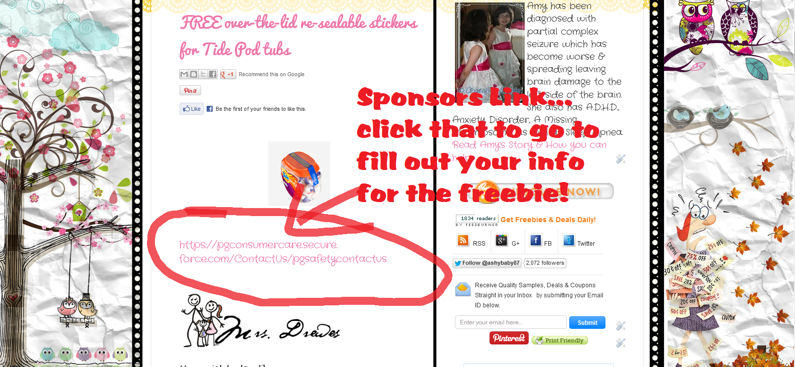 Once you're on the post of the freebie you're interested in you would click the sponsor's link. That would be this link here: